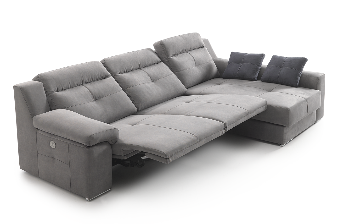 Las almohadas de respaldo, brazos y asiento son desenfundables. Incorpora patas cromadas de 3 cm, integradas en el diseño del modelo.