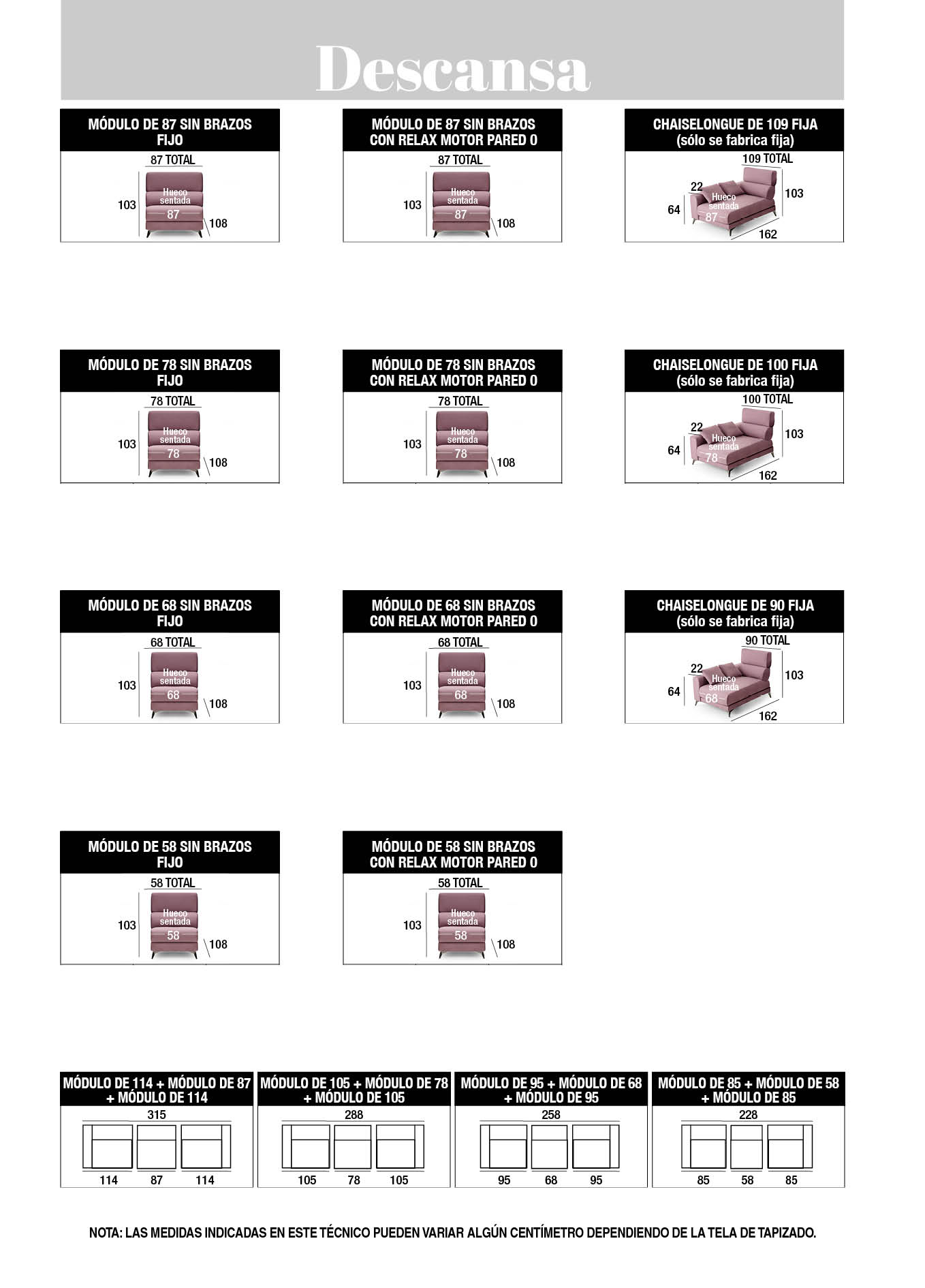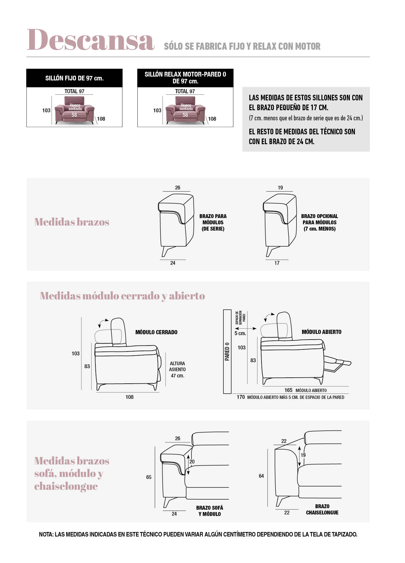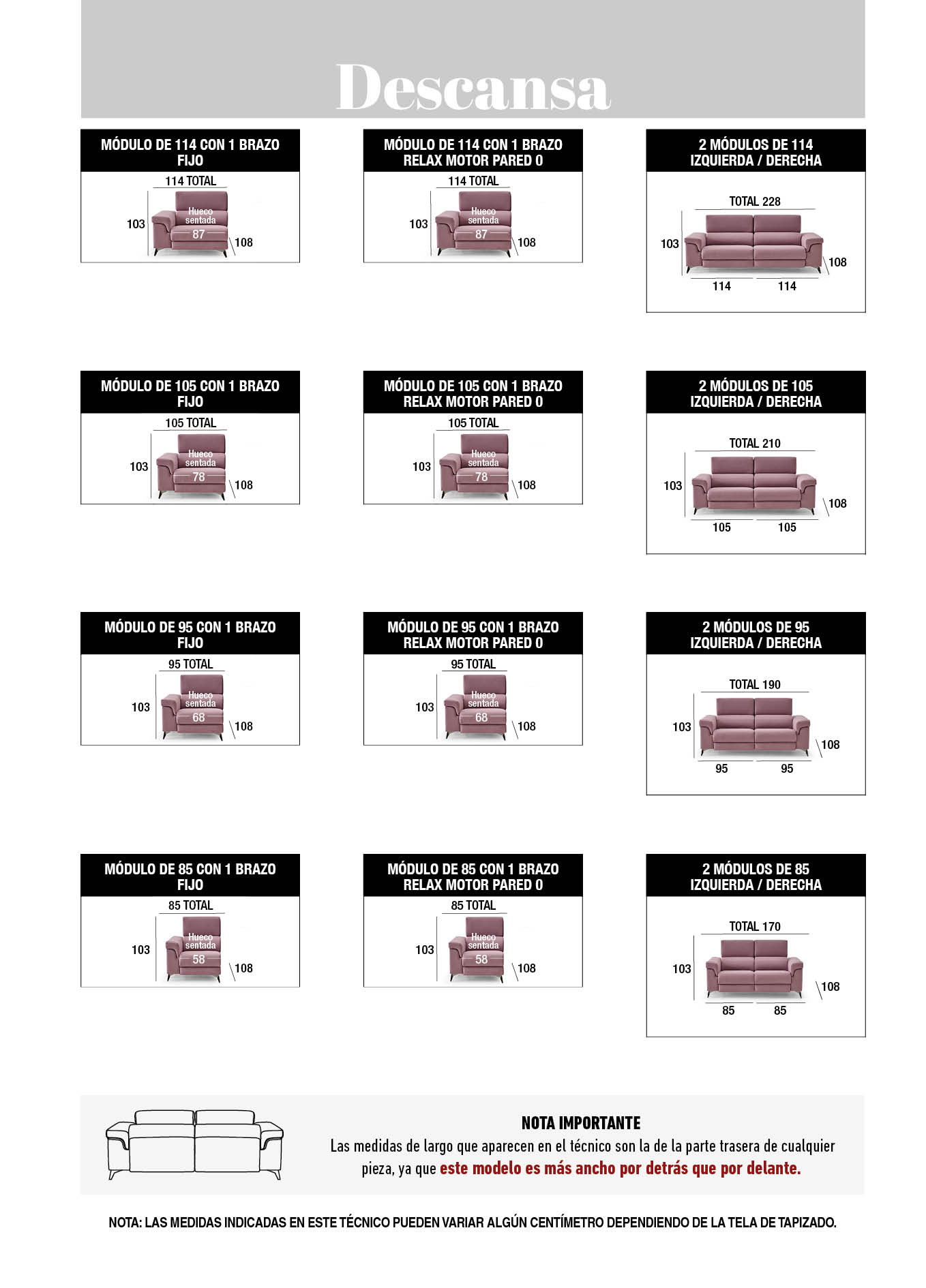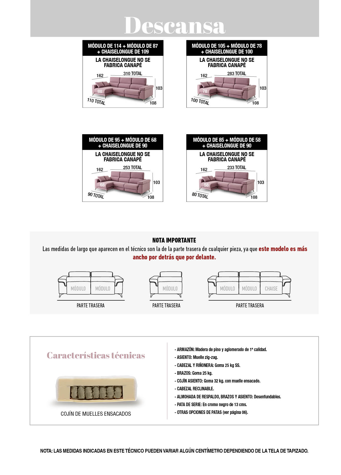 Fabricado con armazón de madera de pino y aglomerado de primera calidad, el sofá relax Descansa ofrece una estructura firme y estable, preparada para un uso continuado.