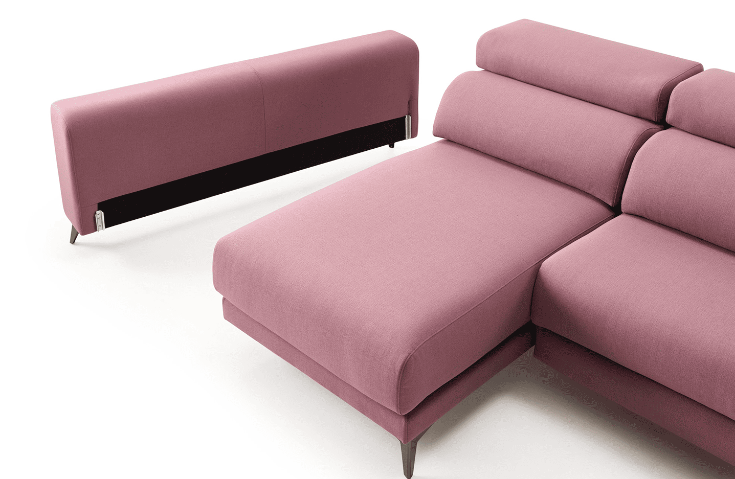Las almohadas de respaldo, brazos y asiento son desenfundables. Incorpora pata de serie en cromo negro de 13 cm, con otras opciones disponibles.