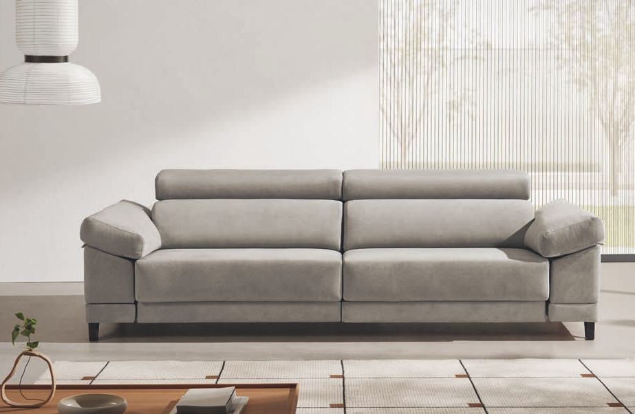 El respaldo incorpora goma de 25 kg SS y las almohadas de brazo están fabricadas con fibra hueca garantizada. Todas las almohadas son desenfundables para facilitar su mantenimiento.