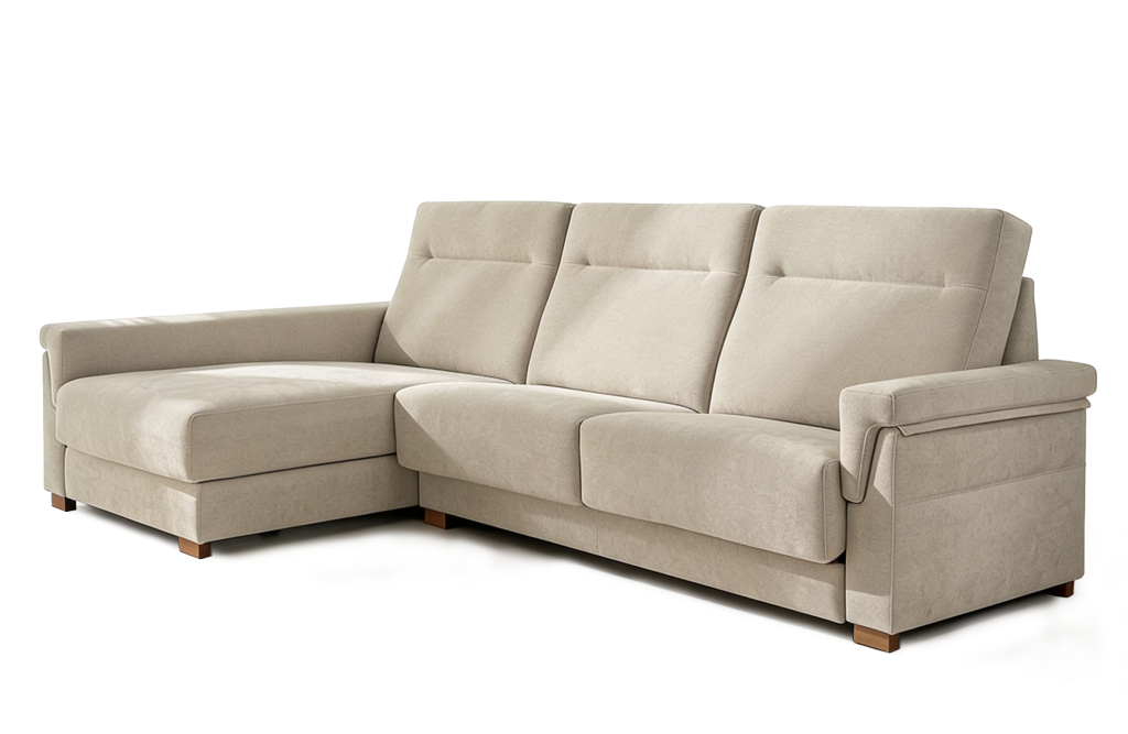 Fabricado con armazón de madera de pino y aglomerado de primera calidad, incorpora sistema de muelles en el asiento que aporta una base firme y estable para el uso diario.
