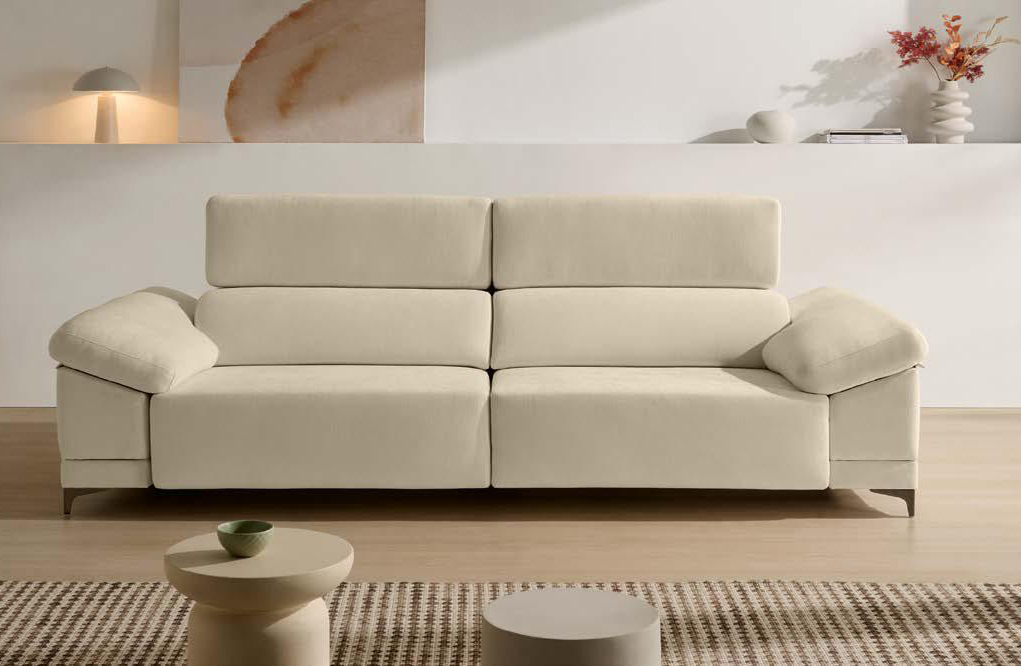 El respaldo incorpora goma de 25 kg SS y las almohadas de brazo están fabricadas con fibra hueca garantizada. Todas las almohadas son desenfundables para facilitar su mantenimiento diario.