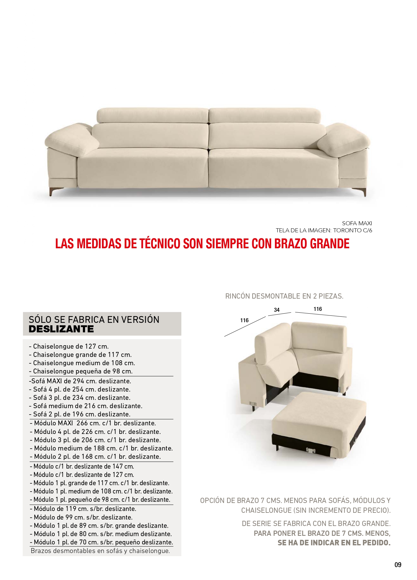 El respaldo incorpora goma de 25 kg SS y las almohadas de brazo están fabricadas con fibra hueca garantizada. Todas las almohadas son desenfundables para facilitar su mantenimiento diario.